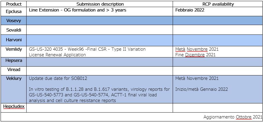 Nell’ottica di comunicare con regolarità le modifiche previste agli RCP dei nostri prodotti, e quindi di agevolare per quanto possibile la gestione di materiali promozionali/non promozionali, in relazione anche agli eventuali aggiornamenti necessari, vi inoltriamo l'allegato con la descrizione delle prossime variazioni relative all'area Liver e Covid-19