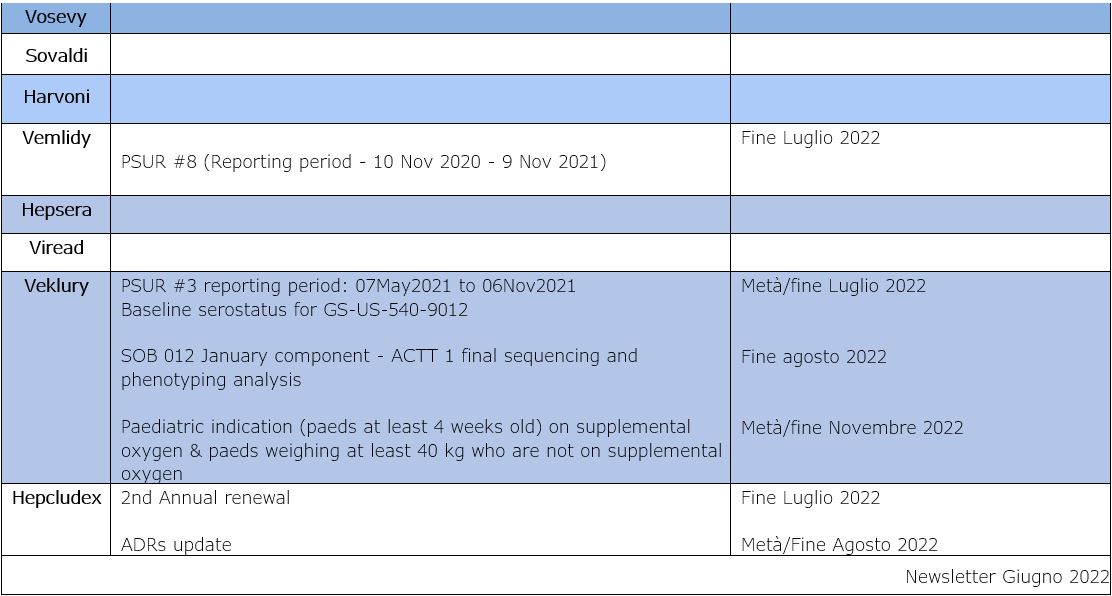 Nell’ottica di comunicare con regolarità le modifiche previste agli RCP dei nostri prodotti, e quindi di agevolare per quanto possibile la gestione di materiali promozionali/non promozionali, in relazione anche agli eventuali aggiornamenti necessari, vi inoltriamo la tabella in ALLEGATO