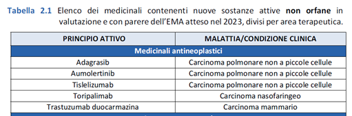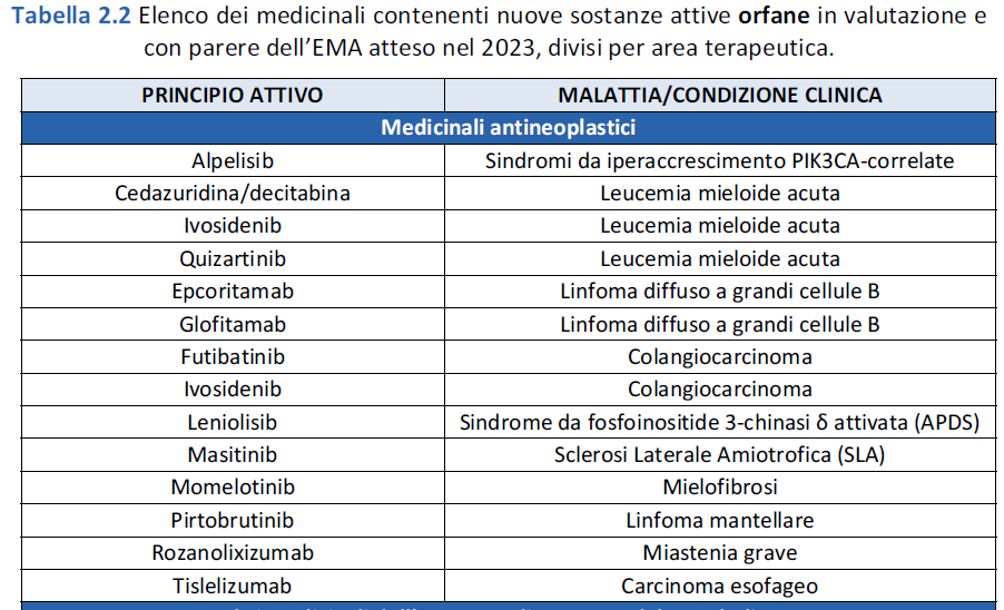 Tra i medicinali in valutazione con parere EMA atteso nel 2023 figurano: