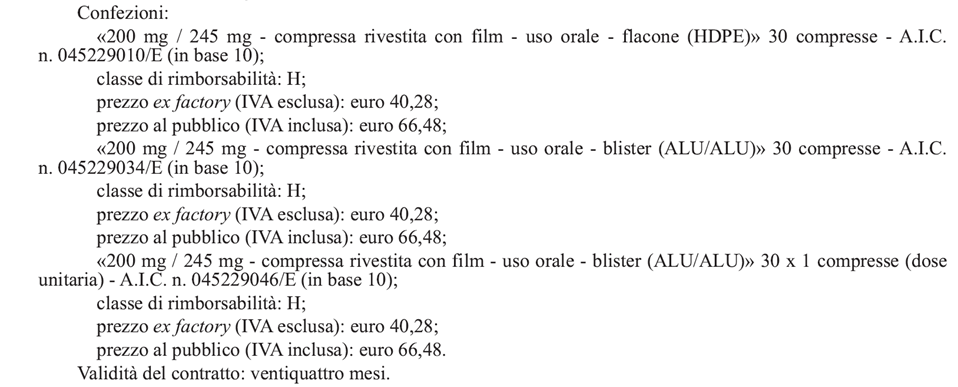 - Regime di rimborsabilità e prezzo, a seguito di nuove indicazioni terapeutiche (PrEP), del medicinale per uso umano «Emtricitabina/TDF Mylano».