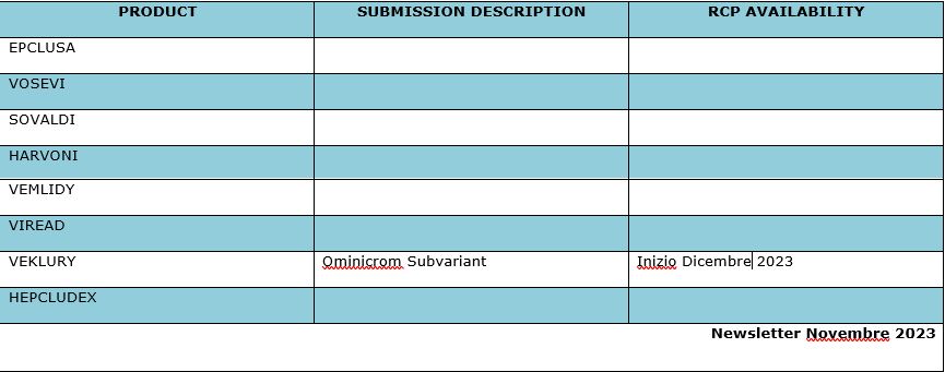 Nell’ottica di comunicare con regolarità le modifiche previste agli RCP dei nostri prodotti, e quindi di agevolare per quanto possibile la gestione di materiali promozionali/non promozionali, in relazione anche agli eventuali aggiornamenti necessari, inoltriamo la tabella in allegato.